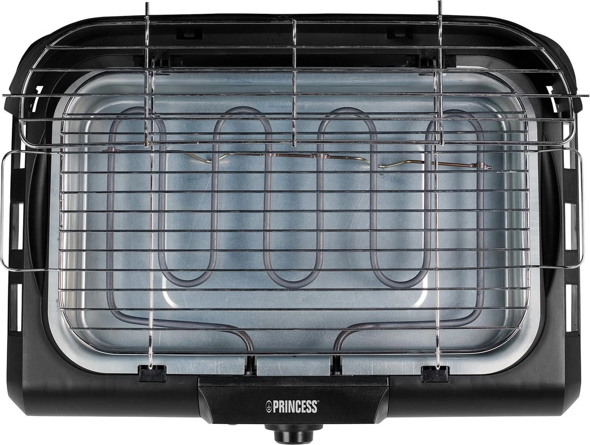 Dankzij de meegeleverde standaard gebruik je de Princess elektrische barbecue zowel als tafelmodel als losse barbecue. De stevige standaard heeft een extra opbergblad waar je al je grillgerei, bestek en marinades in kwijt kunt. De barbecue heeft twee grillroosters op verschillende hoogtes waardoor je niet alleen vlees grilt, maar ook vis en groenten. Gebruik het bovenste grillrooster om een groter stuk vlees te laten rusten, zodat het warm en sappig blijft, terwijl u de groenten snel grilt op het onderste rek, zodat u het allemaal tegelijkertijd kunt serveren.
